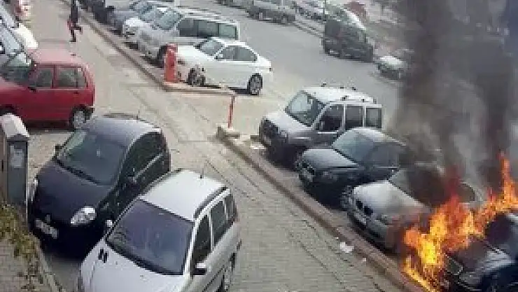 Konya'da bir otomobilin kundaklanma anı güvenlik kamerasınca kaydedildi.