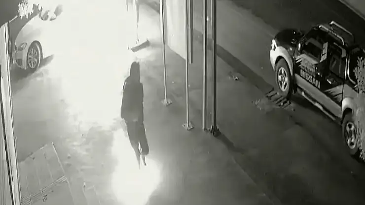 Öte yandan şahısların petrol istasyonundan benzin alma ve otomobili yakmaları saniye saniye kameralara yansıdı. Görüntülere göre ticari taksiyle ilk olarak benzin istasyonuna gelen şüpheliler, buradan şişeyle benzin alıyor. Ardından otomobilin olduğu bölgeye giden şüphelilerden F.K. isimli şahıs rahat bir şekilde otomobilin etrafına benzin döküp, ateşe veriyor. Otomobil birden alev topuna dönerken, ayağına benzin dökülen F.K.'da yanmaktan son anda kurtuluyor. Ayağı alev topuna dönen şahıs, koşarak ateşi söndürmeye çalışıyor.