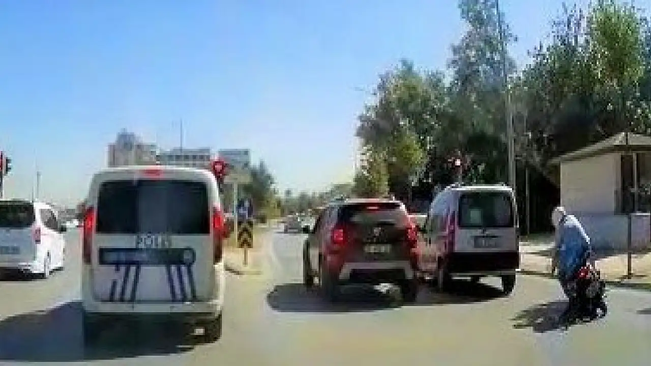 Denizli'de motosikletiyle seyir halinde ilerleyen sürücü, yaptığı ani manevra sayesinde büyük bir kazadan kurtuldu. Kırmızı ışıkta aniden duran araçlara çarpmamak arasını yana deviren sürücü, kazadan hafif sıyrıklarla kurtuldu.