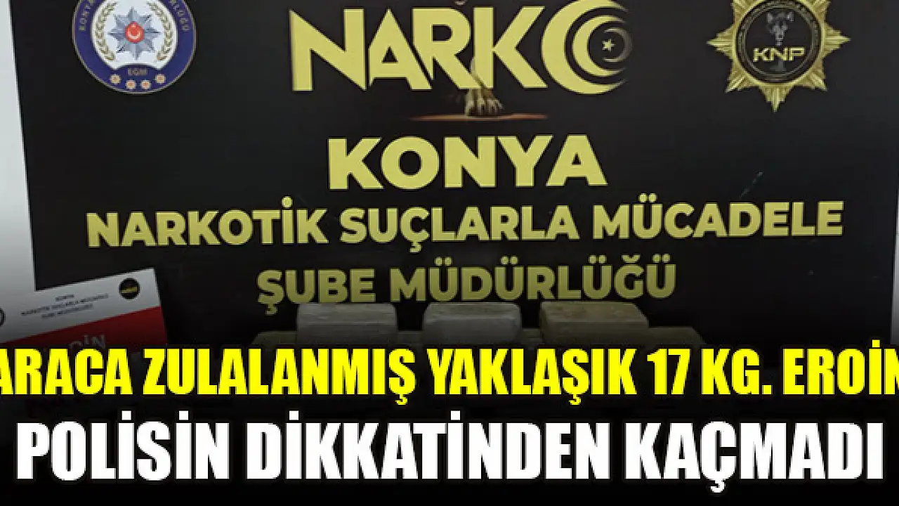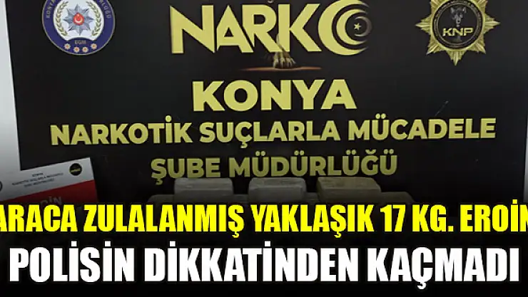 Araca zulalanmış yaklaşık 17 kg. eroin polisin dikkatinden kaçmadı