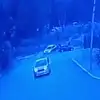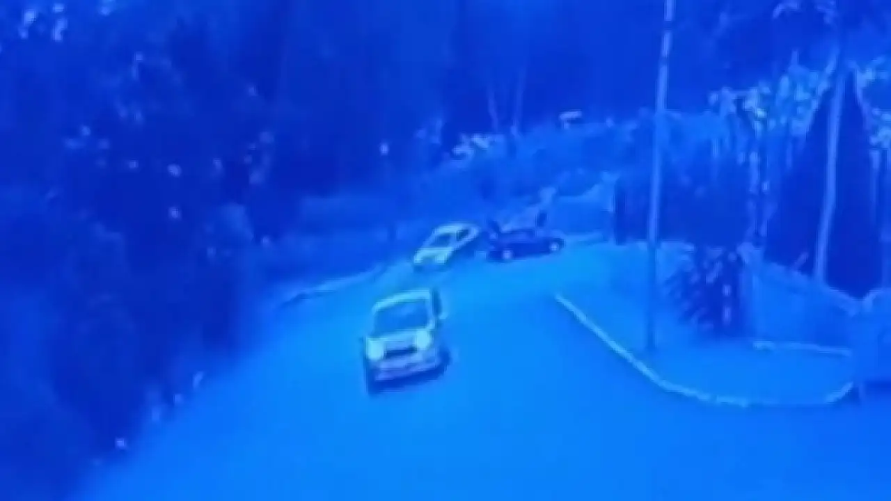 Yol kenarında park halinde bulunan aracın yanındaki bir kişi ise, üzerine gelen otomobili son anda fark ederek kendini yola attı.