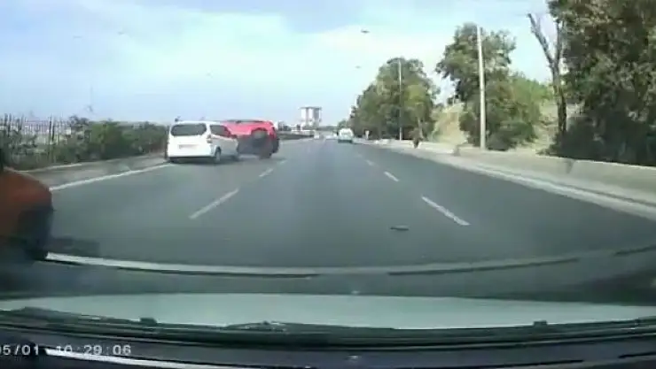 Kaza, saat 10.30 sıralarında Bayraklı ilçesinde bulunan Anadolu Caddesi'nde meydana geldi. Edinilen bilgiye göre, orta şeritte seyir halinde olan Ö.T. idaresindeki hafif ticari araç, sağ şeritte ilerleyen otomobile arkadan çarpmasıyla H.C. idaresindeki otomobil kontrolden çıkarak takla attı. Kazanın devamında ise başka bir hafif ticari araç sürücüsü M.Y. de kaza sonucu aniden duran araca çarparak durabildi. O anlar araç kamerasına saniye saniye yansıdı. Kazada, otomobildeki yolcu K.A. hafif şekilde yaralandı.