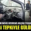 Aracının ön konsol kısmına kaçan yılanına kavuştu, verdiği tepkiyle gülümsetti