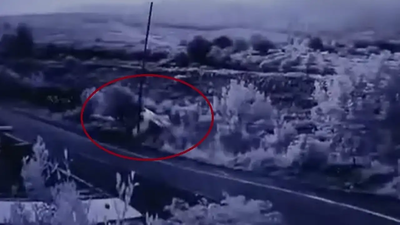 Hatay'da 2 kişinin yaralandığı kazada aracın yol kenarındaki bahçeye uçtuğu anlar güvenlik kamerasına yansıdı.