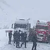 Araçlar karlı yolda mahsur kaldı