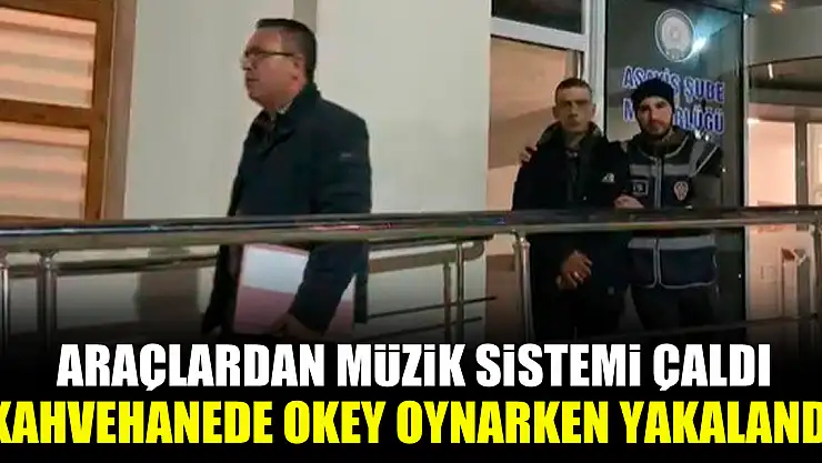 Araçlardan müzik sistemi çaldı, kahvehanede okey oynarken yakalandı