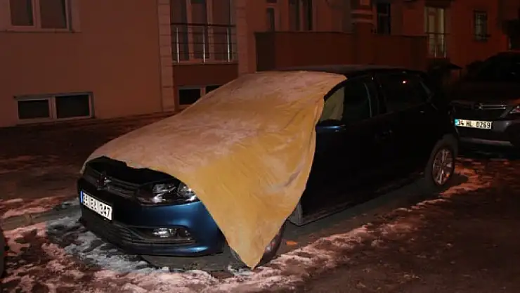 Soğukların etkili olduğu Kars'ta, vatandaşlar araçlarını soğuktan korumak için ne bulduysa araçlarının üzerine örttü.