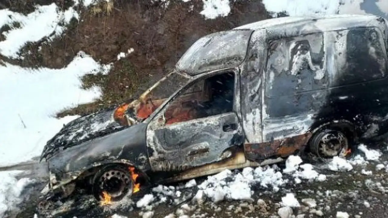 Ağılın yanında hafif ticari aracın yandığını görenler itfaiyeye haber verdi. Olay yerine gelen itfaiye ekipleri alev alev yanan aracı söndürdü.