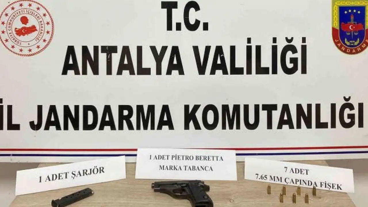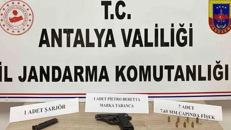 Antalya'nın Aksu ilçesinde Jandarma ekipleri, bir şahsın aracında yaptığı aramada ruhsatsız tabanca ele geçirdi.