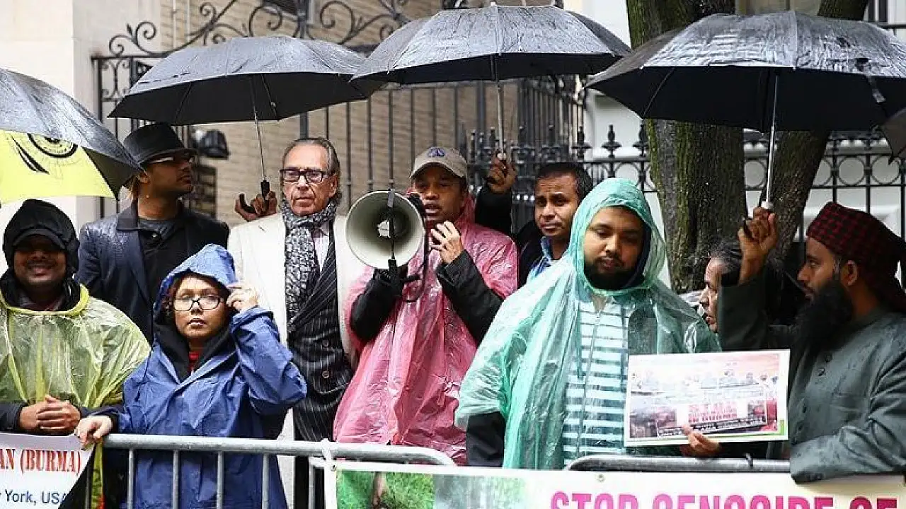 Myanmar'daki Arakanlı Müslümanlara (Rohingyalara) yönelik katliamlar ve şiddet olayları, ABD'nin New York kentinde protesto edildi.