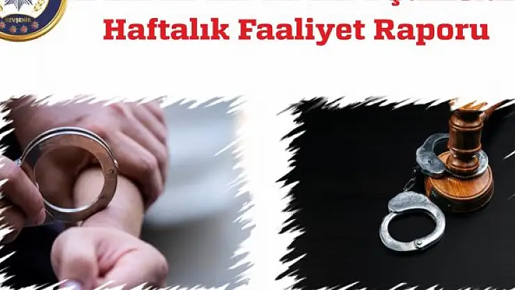 Nevşehir İl Emniyet Müdürlüğü Asayiş Şube Müdürlüğü ekiplerince yapılan çalışmalarda; "Ailenin Korunması Tedbirinin İhlali" suçundan aranan hakkında 3 gün hapis cezası bulunan M.H., "Borçlunun Ödeme Şartını İhlal" suçundan aranan ve hakkında 3 ay hapis cezası bulunan G.D., "Basit Yaralama" suçundan aranan ve hakkında 112 gün hapis cezası bulunan O.D., "Silahla Tehdit" suçundan aranan ve hakkında 1 yıl 6 ay hapis cezası bulunan İ.K., "Cinsel Taciz" suçundan aranan ve hakkında 1 yıl 6 ay hapis cezası bulunan A.E., "Göçmen Kaçakçılığı Yapma" suçundan aranan ve hakkında 3 yıl 4 ay hapis cezası bulunan E.K., "Gece Vakti Yağma" suçundan aranan ve hakkında 4 yıl 2 ay hapis cezası bulunan O.K., "Trafik Güvenliğini Tehlikeye Sokma" suçundan aranan ve hakkında 2 ay hapis cezası bulunan E.K., "Borçlunun Ödeme Şartını İhlal" suçundan aranan ve hakkında 3 ay hapis cezası bulunan H.A., "6136 SKM- Basit Yaralama" suçlarından aranan ve hakkında 7 ay 15 gün hapis cezası bulunan B.A., "Müstehcen Yayınların Üretiminde Çocukları Kullanmak" suçundan aranan ve hakkında 5 yıl hapis cezası bulunan Y.B. yakalandı.