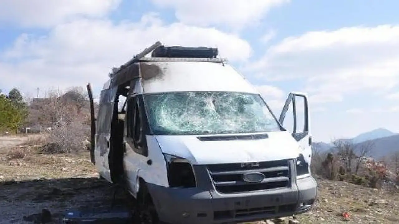 KONYA'nın Seydişehir ilçesinde boş arazide yanmış minibüs bulundu.