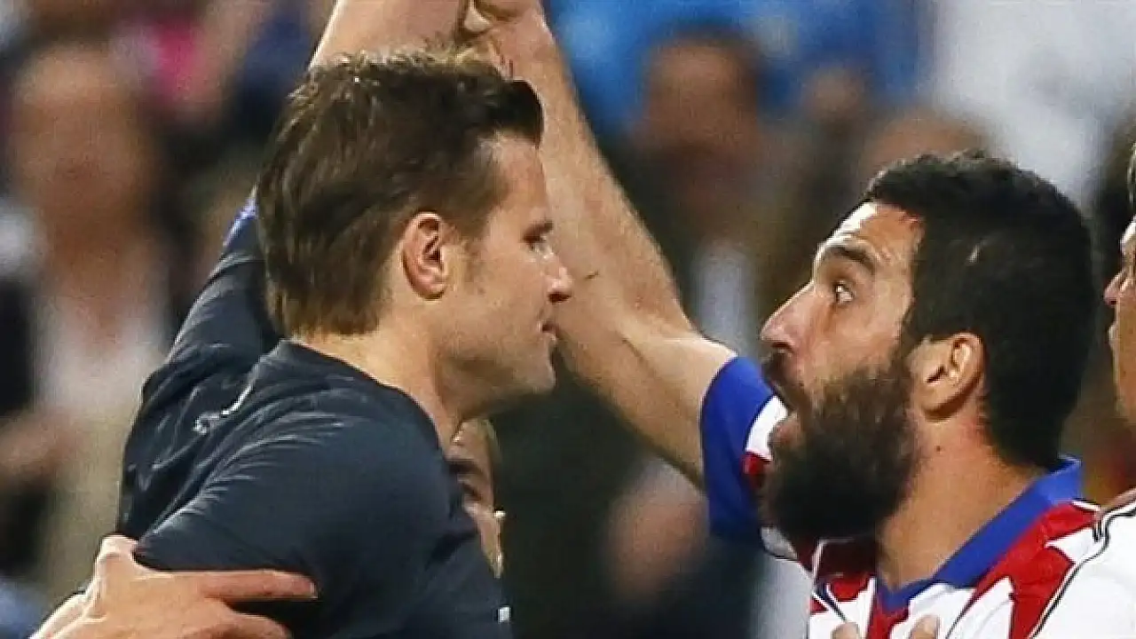 Mücadelenin ilk yarısında gol sesi çıkmazken, 76. dakikada milli oyuncu Arda Turan rakibine yaptığı faul sonrası ikinci sarıdan kırmızı kartla oyun dışı kaldı. Real Madrid, rakibinin 10 kişi kalmasıyla baskısını arttırdı ve aradığı golü buldu. Ronaldo'nun asistiyle Javier Hernandez fileleri havalandırarak maçın skorunu belirledi. (1-0). Atletico Madrid'in sahasında oynanan ilk maç 0-0 bittiği için Real Madrid, üst tura çıkan takım oldu.