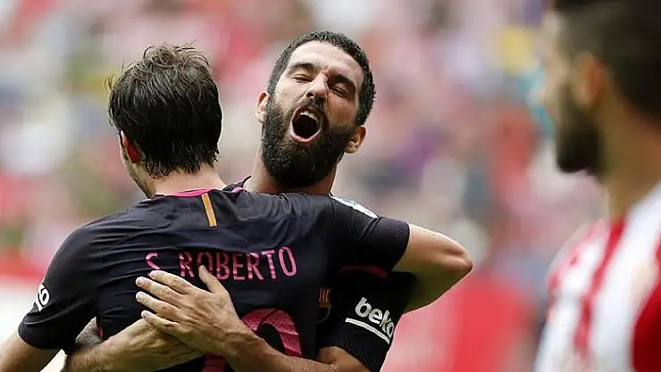 Gijon deplasmanında fazla zorlanmayan Barcelona, baştan sona rakibine üstünlük kuran bir futbol oynadı. 29. dakikada Arda'nın asistinde topla buluşan Luis Suarez, kaleciyi geçtikten sonra meşin yuvarlağı ağlara göndererek Barcelona'yı 1-0 öne geçirdi. 32. dakikada Sergi Roberto'nun vuruşunda direkten dönen topu tamamlayan Rafinha farkı ikiye çıkardı. İlk yarı Barcelona'nın 2-0'lık üstünlüğü ile sonuçlandı.