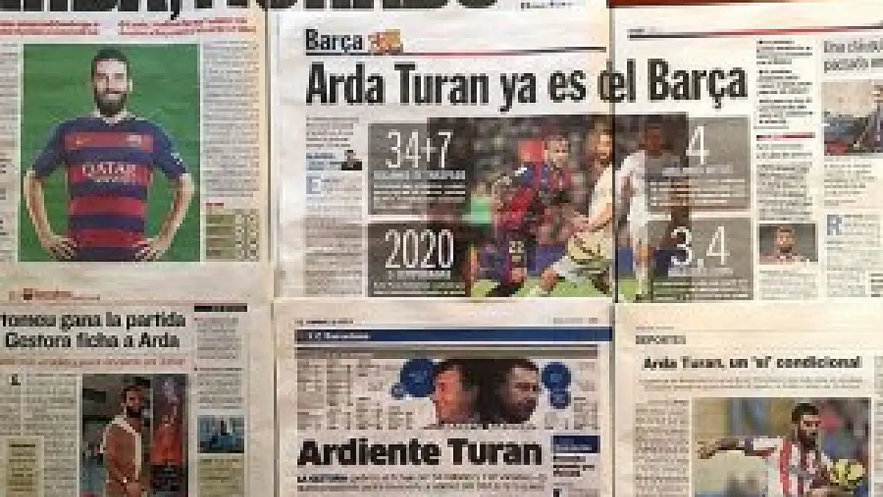 Katalan spor gazeteleri Sport ve El Mundo Deportivo, Barcelona'nın 34 milyon avroya kadrosuna kattığı Arda Turan için "Transfer edildi" manşetini attı. Sport gazetesi,Barcelona İdari Kurulu'nun Arda Turan'ı transfer etmek için "Hayali bir yöntem" bulduğunu belirterek, yeni kulüp başkanının Türk futbolcuyu istememesi halinde 20 Temmuz gece yarısından önce 3,4 milyon avro daha düşük (30,6 milyon) bedelle Atletico Madrid'e geri satabileceği maddesine vurgu yaptı.