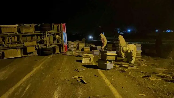 Arı kovanı yüklü pikap takla attı, arılar yola saçıldı