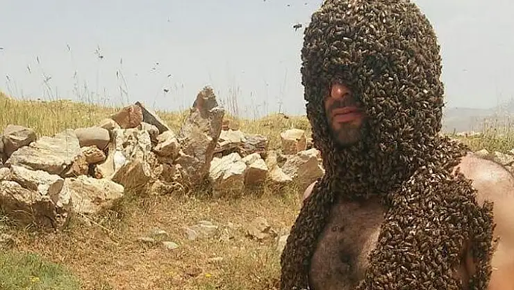 Van'ın Çatak ilçesinde arıcılık yapan Abdulvahap Semo, Guinness Rekorlar Kitabı'na girebilmek için üzerine binlerce arı çekti.