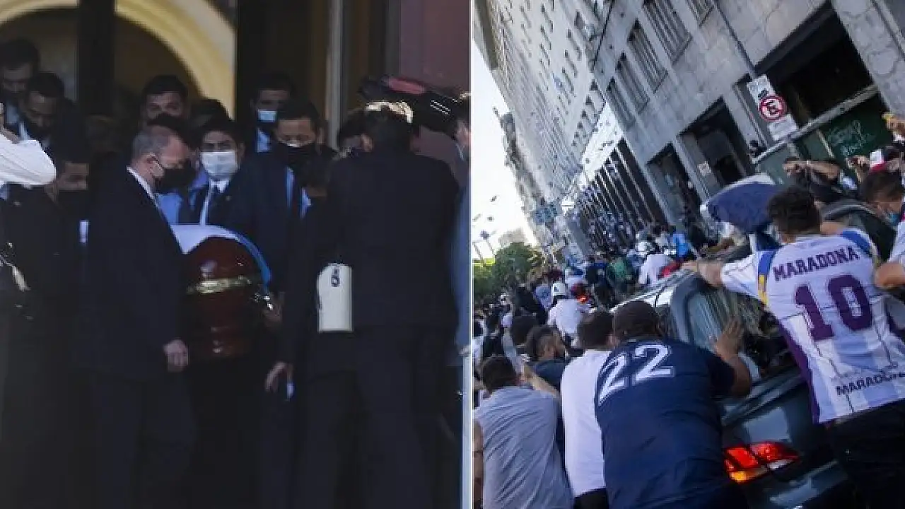 Arjantin'de yüz binler efsane futbolcu Diego Armando Maradona'yı son yolculuğuna uğurladı. Buenos Aires'teki uğurlama töreninde, efsanenin naaşını görmek isteyen taraftarlarla emniyet güçleri arasında zaman zaman çatışmalar yaşandı.