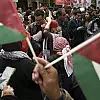 Kalabalık, "Özgür Filistin" ve "Emperyalizm evine dön" sloganları atarak, Filistin'e yönelik devam eden saldırıların durmasını istedi.