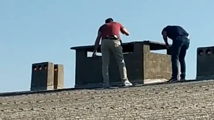 BALIKESİR'in Bandırma ilçesinde restoranda birlikte içki içtiği arkadaşı İsmail Hakkı Arkan'ı (33), çıkan tartışmanın ardından bıçaklayarak öldüren Bahadır Bayraktaroğlu (34), bir işyerinin bacasında saklanırken yakalandı. Polis ekiplerinin şüpheliyi yakaladığı anlar, kameralara yansıdı.
