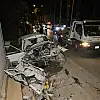 Kazada demir yığınına dönen otomobilde sıkışan sürücü Çınar Kazan ile yanındaki arkadaşı Bünyamin Serin, itfaiye ekibi tarafından çıkarıldı.