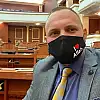 Arnavutluk Meclisinde muhalefet milletvekili Halit Valteri, Genel Kurul toplantısına 'I Love Allah' (Allah'ı seviyorum) yazılı maskeyle katıldı.