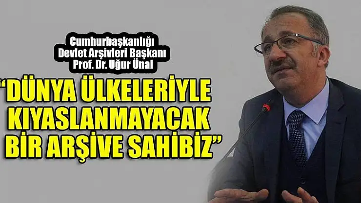 Cumhurbaşkanlığı Devlet Arşivleri Başkanı Prof. Dr. Uğur Ünal,'Sahip olduğumuz arşivler dünyada en başta gelen arşivlerdendir.Bununla iftihar edebiliriz. Dünya ülkelerinin hemen hemen hiçbiriyle kıyas götürmeyecek muazzam bir evrak birikimine sahibiz'dedi