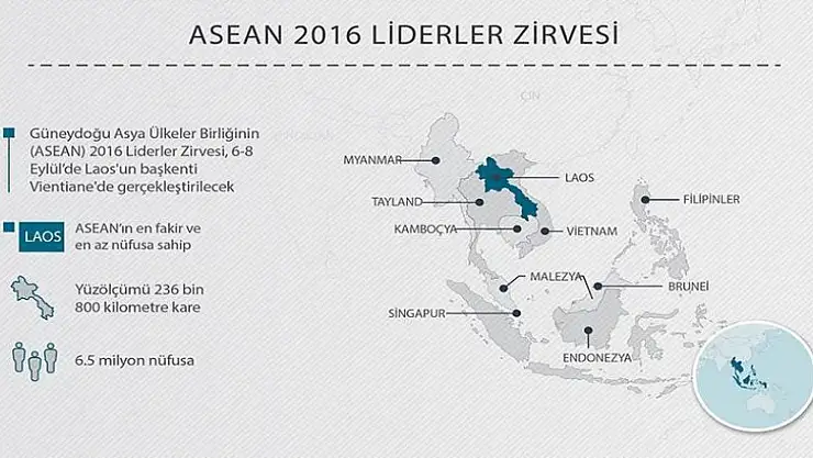 Yaklaşık 6,5 milyon nüfusa sahip Laos Demokratik Halk Cumhuriyeti, ASEAN ülkeleri arasındaki en düşük nüfusa sahip ülke konumunda. Denize kıyısı bulunmayan 236 bin 800 kilometrekarelik alana sahip Laos, geçen yıl yüzde 7 büyüme hızıyla birlik üyeleri arasında büyüme oranı en yüksek ülke olmuştu. Laos, ASEAN'ın en fakir üyesi olarak da biliniyor.