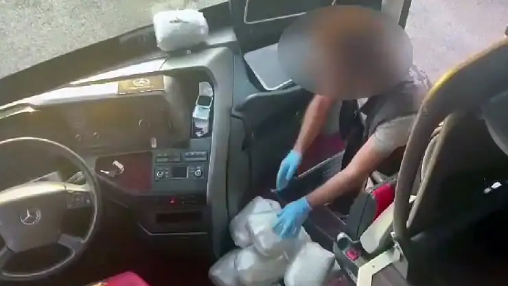 'Aşil' tepki verdi, yolcu otobüsünün içecek dolabından 9 kilo esrar çıktı