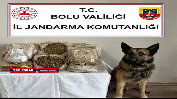 Bolu'da jandarmanın durdurduğu yolcu otobüsünde narkotik köpeği 'Asır' ile yapılan aramada, çuvallar içerisinde 17,5 kilo esrar ele geçirildi.