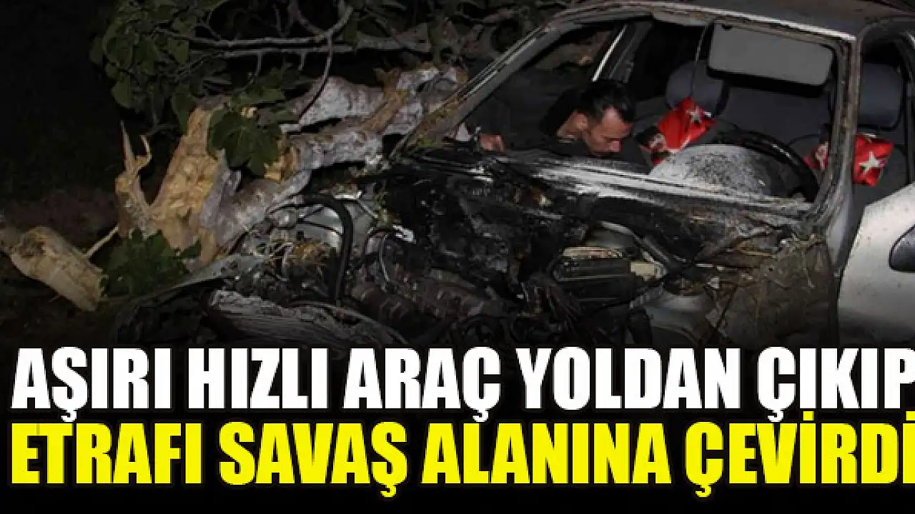 Aşırı hızlı araç yoldan çıkıp etrafı savaş alanına çevirdi