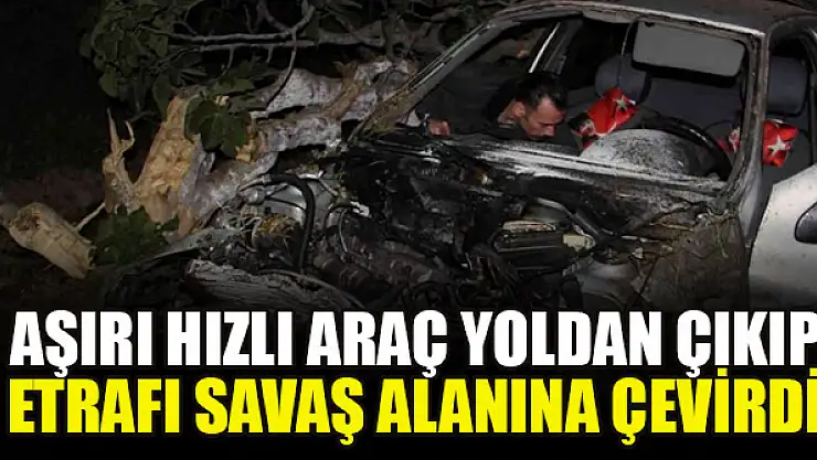 Aydın'da gece yarısı 120 km hızla yoldan çıkan bir otomobil etrafı savaş alanına çevirdi.
