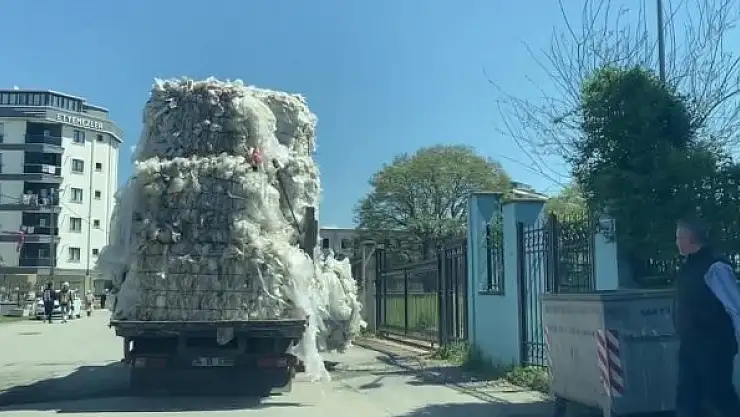 Sancaktepe'den yan yol üzerinden Sultanbeyli'ne doğru seyir halinde olan kamyonet sürücüsünün kasasına aşırı yüklediği geri dönüşüm malzemeleri adeta kazaya davetiye çıkarttı. Kasadaki malzemelerin rüzgar nedeniyle de her an devrilecek gibi durması ve malzemelerin kamyonetin yan tarafına doğru sarkması trafikteki diğer sürücülerin panik olmasına neden olurken, kamyonet sürücüsünün tehlikeli yolculuğu bir vatandaş tarafından cep telefonu kamerasıyla saniye saniye kaydedildi.
