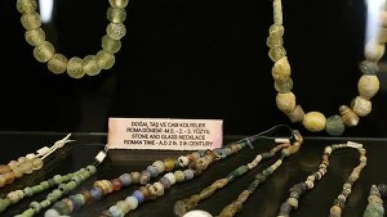 Gaziantep'te Medusa Arkeolojik Cam Eserler Müzesinde sergilenen ve 2. ile 3. yüzyıldan kalma mezarlarda bulunan el yapımı cam kolye, bilezik ve yüzükler göz kamaştırıyor.