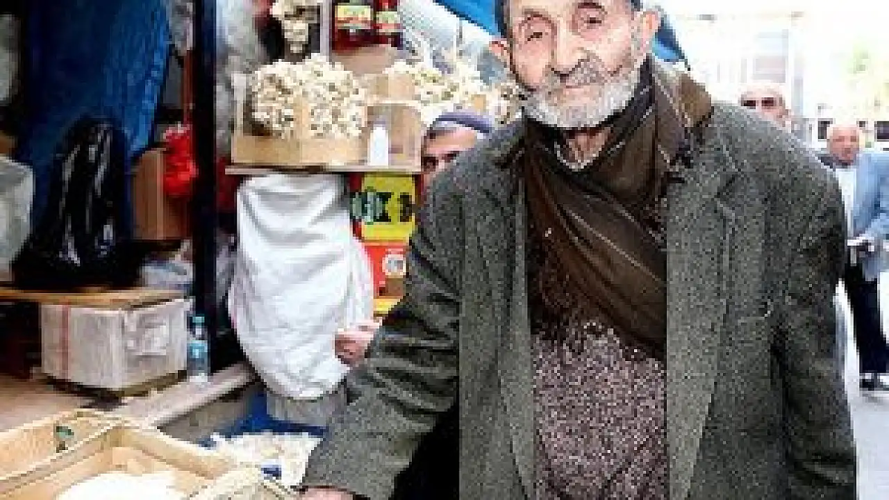 Diyarbakır'da 112 yaşındaki Pirhesin Kaçmaz, ilerlemiş yaşına rağmen 40 yıldır seyyar satıcılık yaparak, 91 yaşındaki yatalak eşi, engelli oğlu ve torununun geçimini sağlıyor.