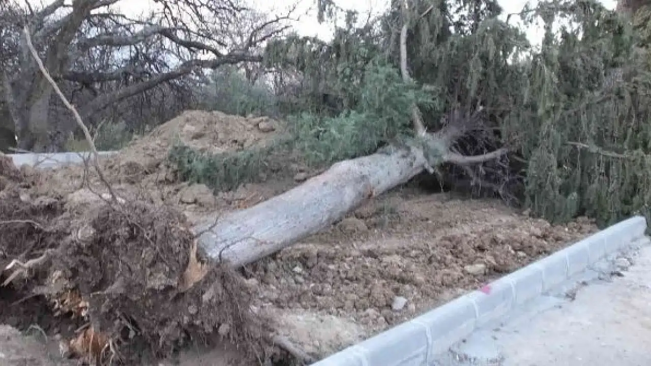 Burhaniye ilçesinde, aşırı rüzgar hayatı olumsuz etkilerken, asırlık servi ağacının yıkılmasına neden oldu. Ağacın boş alana devrilmesi herhangi bir tehlikeyi önlerden, çevrecileri üzdü.