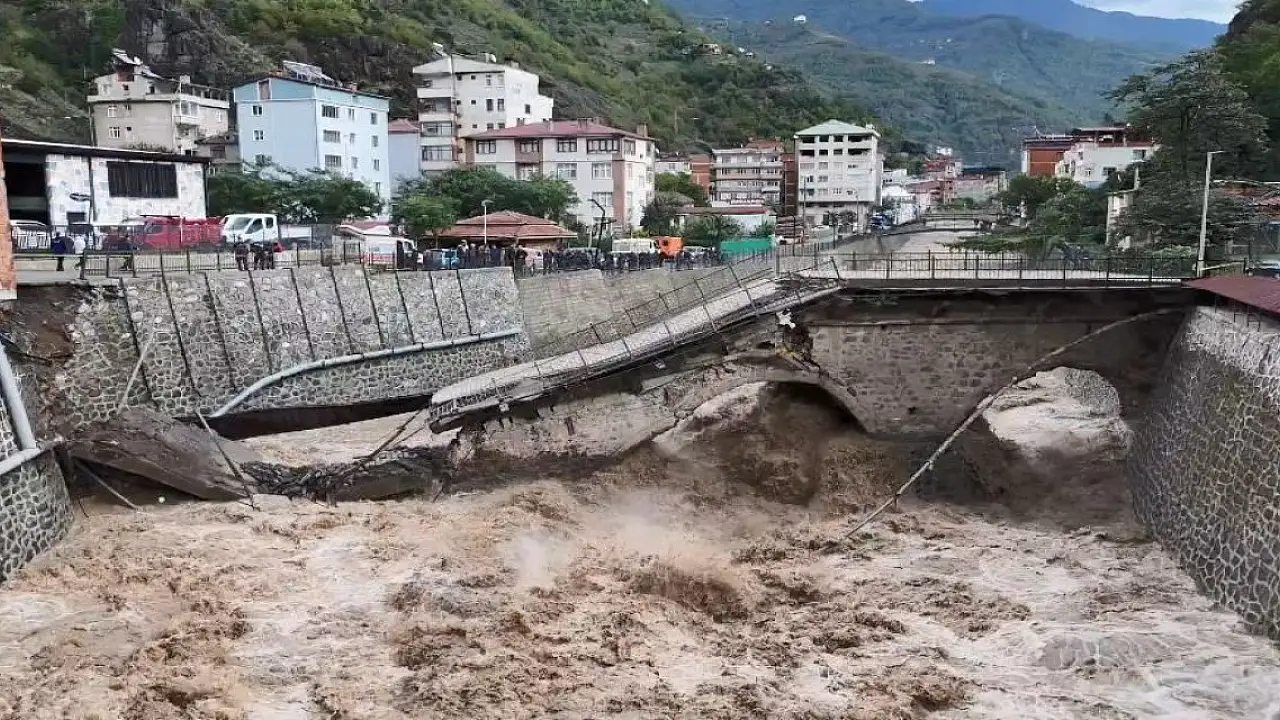Artvin'in Borçka ilçesinde etkili olan şiddetli yağışlar, sel ve heyelanlara neden olurken, Aksu Deresi üzerindeki asırlık tarihi köprü sel sularına dayanamayarak yıkıldı.
