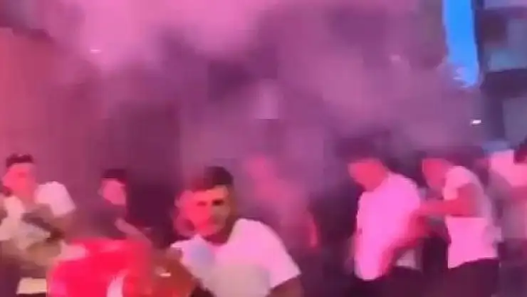 Asker eğlencesinde yakılan meşale, 2 kişinin yaralanmasına neden oldu.