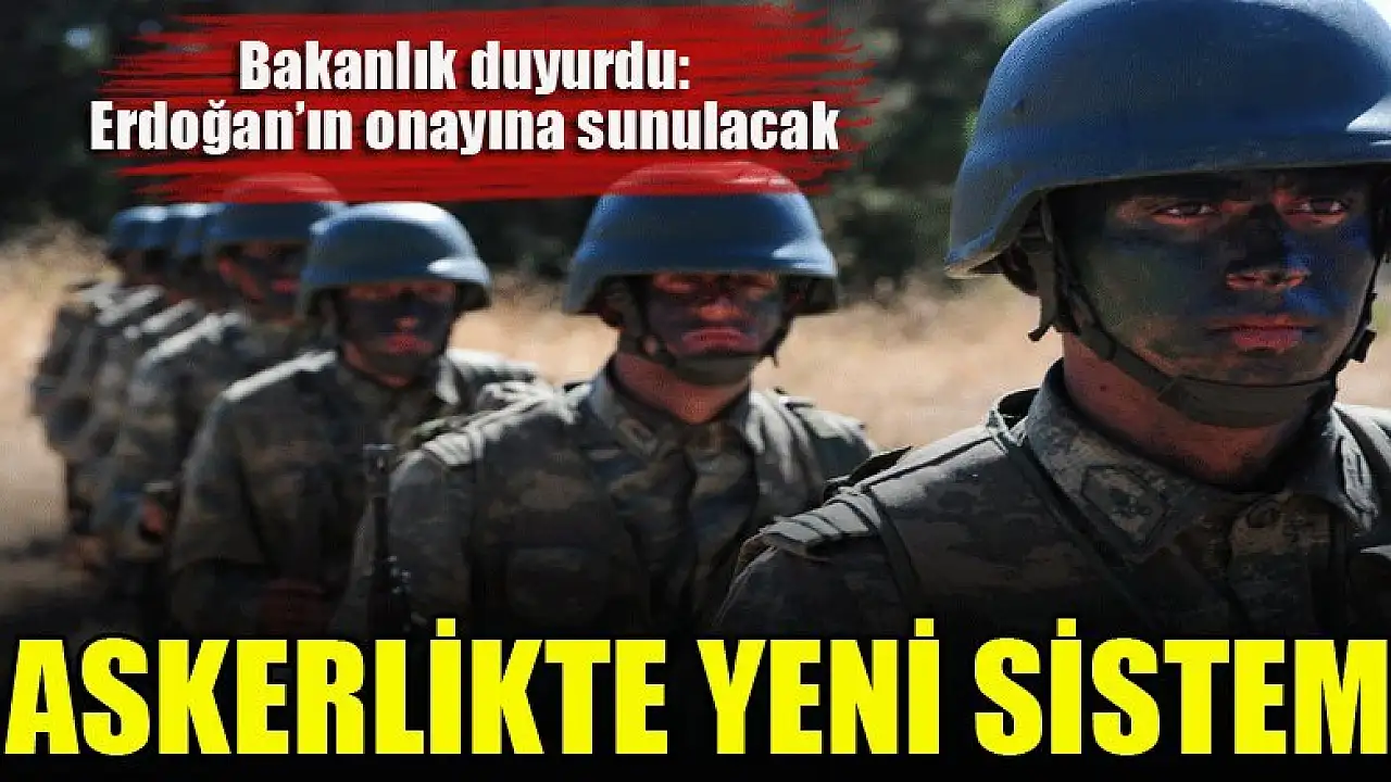 Milli Savunma Bakanlığı, yeni askerlik sistemine yönelik çalışmalarda sona gelindiğini, önümüzdeki günlerde Cumhurbaşkanı Recep Tayyip Erdoğan'ın onayına sunulacağını açıkladı.
