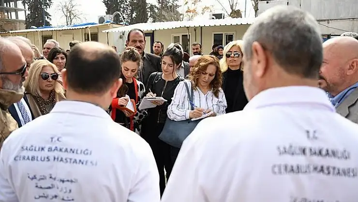 Heyet, Sağlık Bakanlığı tarafından desteklenen Cerablus Hastanesi'ni de ziyaret etti. Hastane hakkında bilgi veren Başhekim Yasin Şahin, "Hastanede günde bin 700 hastaya bakıyoruz, 20 civarında ameliyat yapıyoruz. Muayene, ameliyat ve ilaç hizmetini ücretsiz veriyoruz.Türkiye'deki imkanların aynısı burada bulunuyor artık. Tüm Fırat Kalkanı bölgesinden buraya hasta geliyor." dedi.