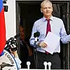 Assange, İngiltere'nin başkenti Londra'nın lüks semtlerinden Knightsbridge'de, ünlü Harrods mağazasının yakınında bulunan büyükelçilik binasında Ekvador Dışişleri Bakanı Ricardo Patino ile basın toplantısı düzenledi.