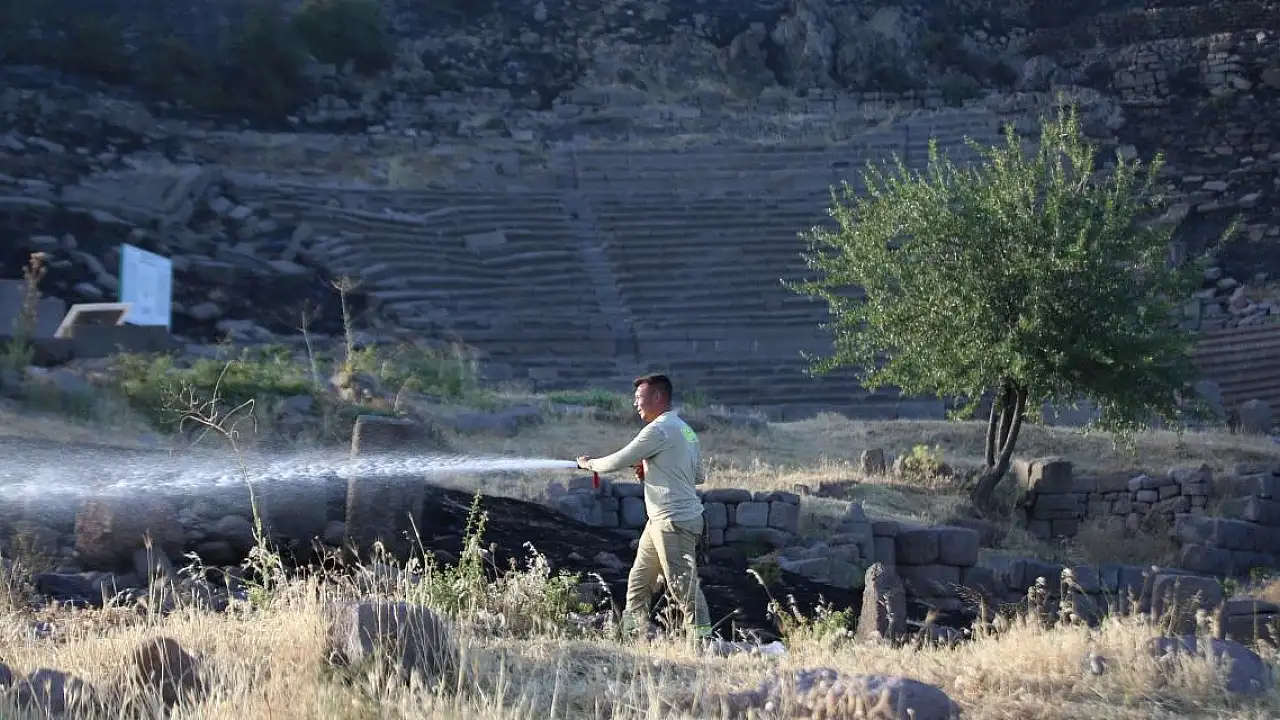 Kültür Varlıkları ve Müzeler Genel Müdürlüğünün sosyal medya hesabından yapılan açıklamada, Çanakkale'nin Ayvacık ilçesi Behramkale köyü sınırlarında saat 16.30 sularında çıkan yangının kontrol altına alındığı ve soğutma çalışmalarının devam ettiği vurgulandı.