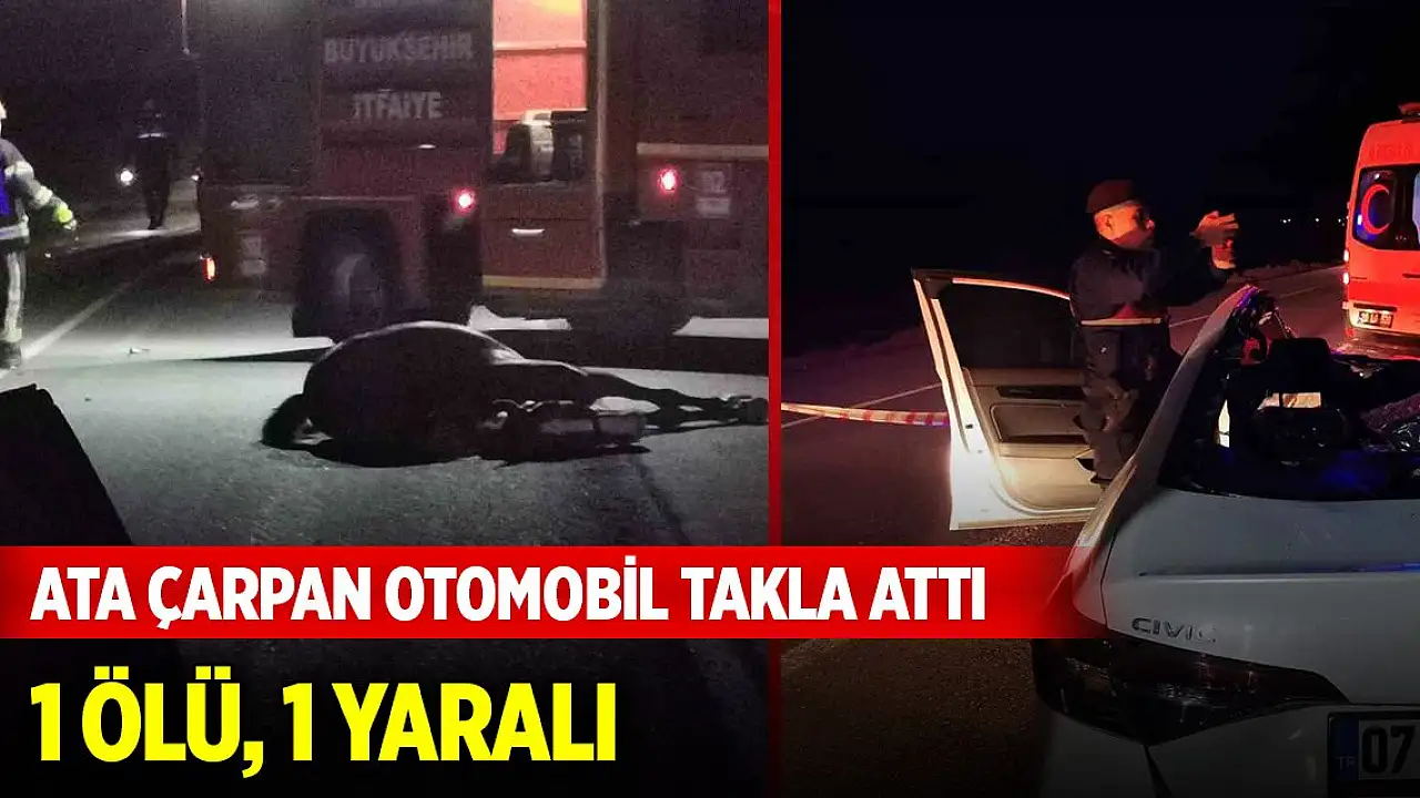 Ata çarpan otomobil takla atarak hurdaya döndü: 1 ölü, 1 yaralı