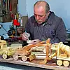 Hayati ustanın ahşap oyuncak iş makineleri sadece küçüklerin değil, büyüklerin de ilgisini çekiyor.