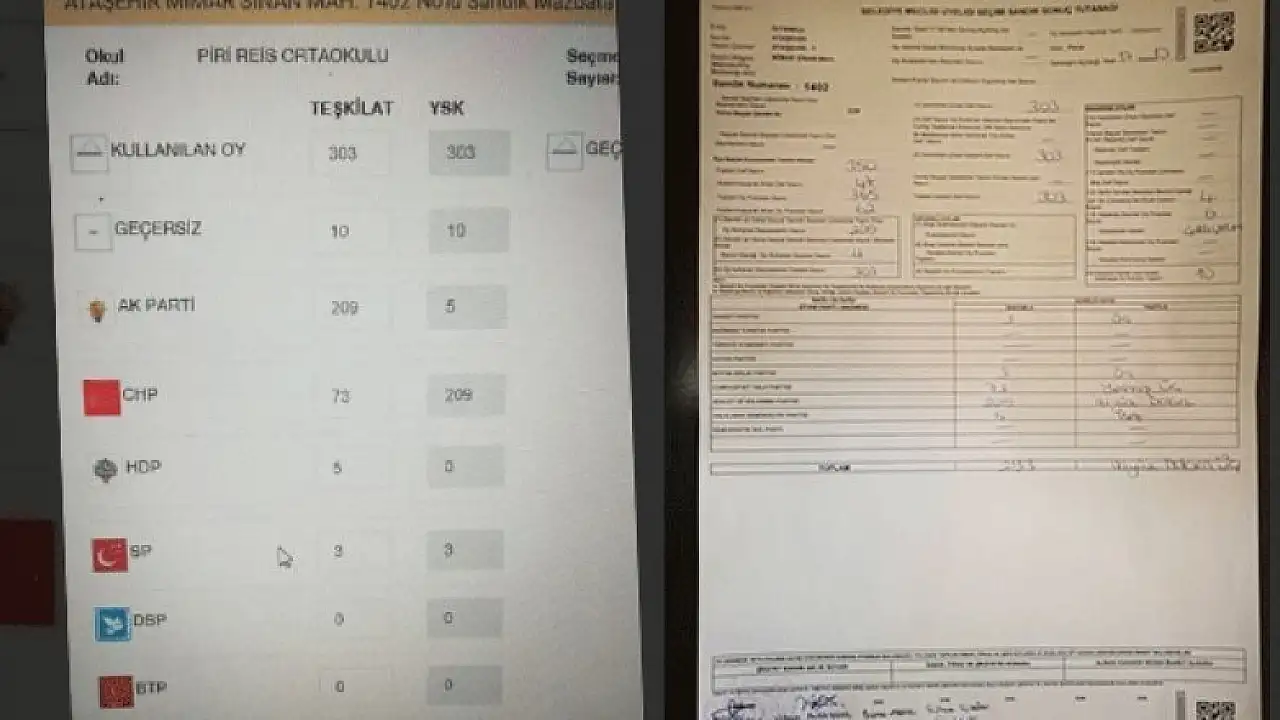 31 Mart yerel seçimlerinde oy sayımında yaşanan usulsüzlükler ortaya çıkmaya devam ediyor. İstanbul Ataşehir ilçesinde belediye meclis üyeliği seçiminde AK Parti'nin aldığı 209 oyun Yüksek Seçim Kurulu (YSK) sistemine 5 oy olarak işlendiği tespit edildi. AK Parti'nin 209 oyunun CHP'ye kaydırıldığı bildirildi.