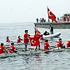 Sahildeki tekneler de Türk bayrağı açıp sirenlerini çalarak anmaya katıldı.