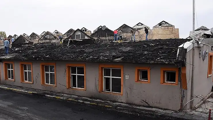 Öte yandan yangında hasar gören merkezi yemekhanenin son durumu AA ekibince dronla görüntülendi.