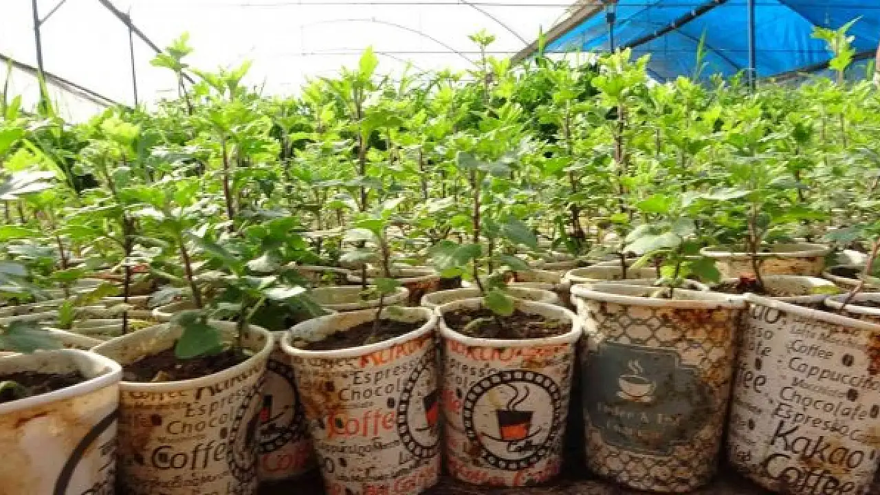 Adana'nın Kozan ilçesinde 4 bin atık karton bardak çiçek fidesi üretiminde kullanıldı.