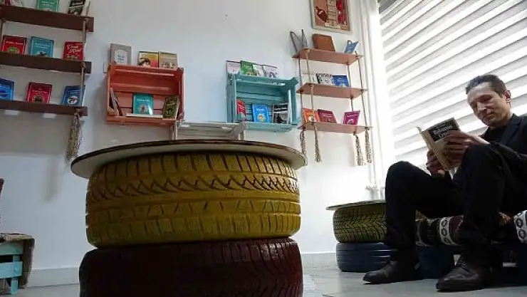 Atık malzemelerden 'kitap okuma köşesi' yapıldı