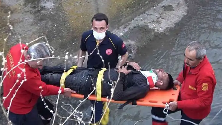 112 Acil Çağrı Merkezi'ne yapılan ihbarla olay yerine sağlık ve itfaiye ekipleri sevk edildi. Kanala giren itfaiye ve sağlık görevlileri, yaralı vatandaşı sedyeye bağladı. Merdiven ve halat yardımıyla kanaldan çıkartılarak ilk müdahalesi ambulansta yapılan İbrahim Coşkun, Tıp Fakültesi'ne sevk edildi. Tedavi altına alınan Coşkun'un kafasından yaralandığı ve ayağında da incinme olduğu öğrenildi.